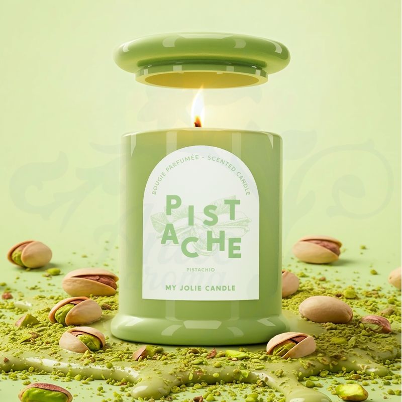 Vela trendy Pistache: el pistacho que no engorda… solo perfuma y crea dependencia.